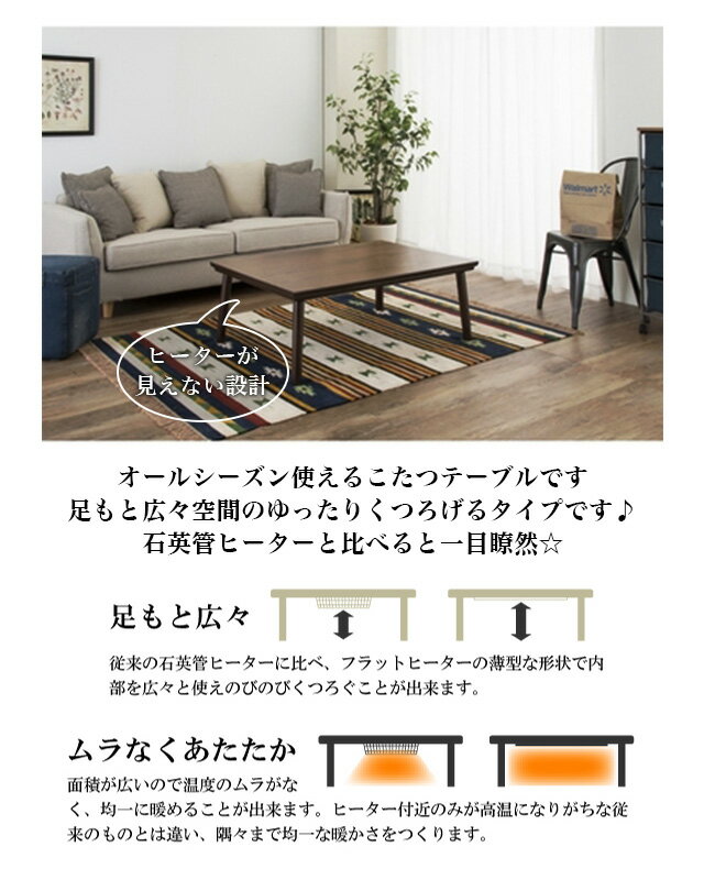 メーカー希望小売価格はメーカーカタログに基づいて掲載していますアイテム説明 商品詳細 オールシーズン使えるこたつテーブルです^^足もと広々空間のゆったりくつろげるタイプです♪